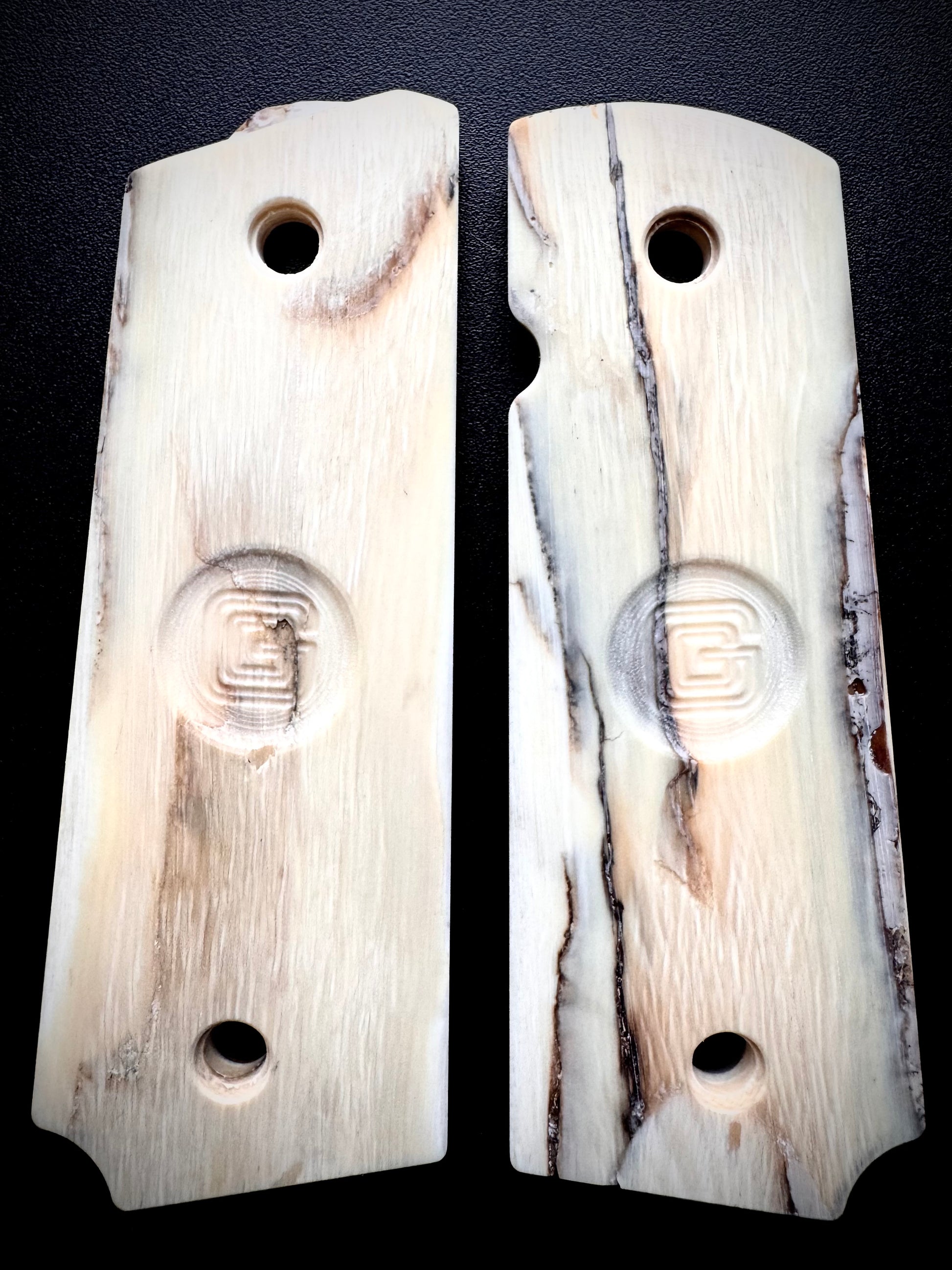 **Natural materials may display or contain natural defects such as fissures or cracks. We only use the best professionally stabilized materials in our work. Even taking all precautions it is possible for materials to change and naturally age overtime. Please properly care for and store your grips.